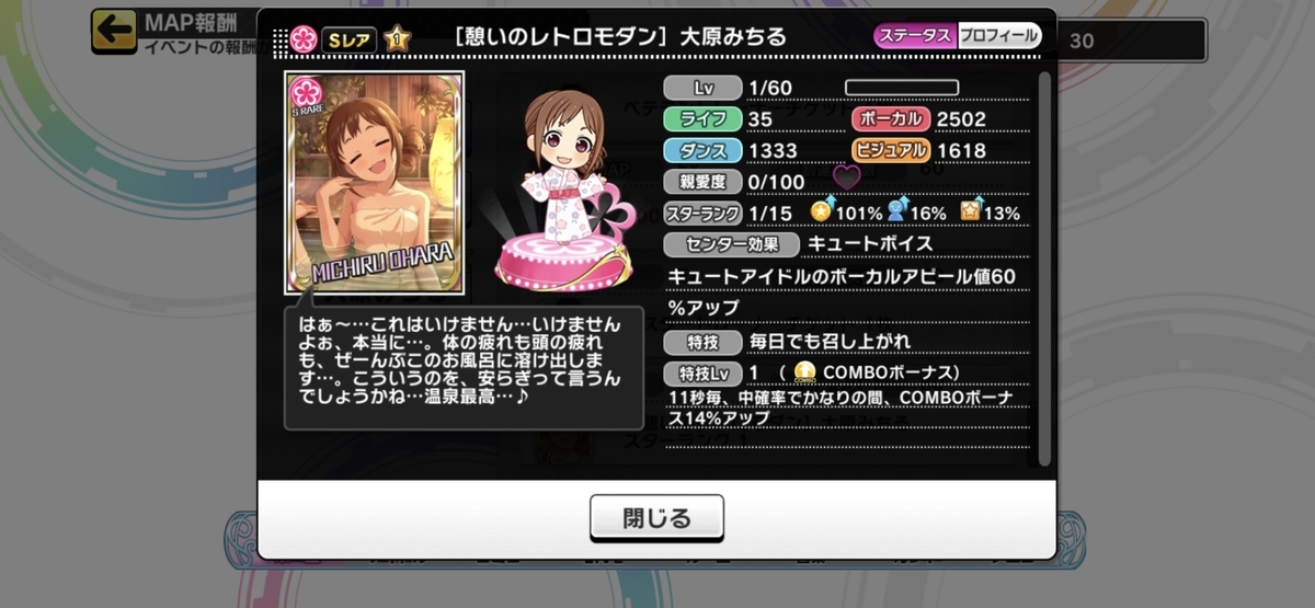 新曲やイベント専用のLIVE会場などは無く、通常のLIVEをプレイしつつ報酬を集めるという形式なので、比較的のんびり進めることができるイベントと言えます。