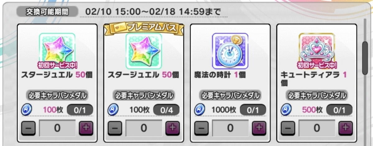メダル交換の項でも少し触れましたが、デレステの月額制サービス「プレミアムパス」を購入していると、キャラバンでは以下の特典があります。