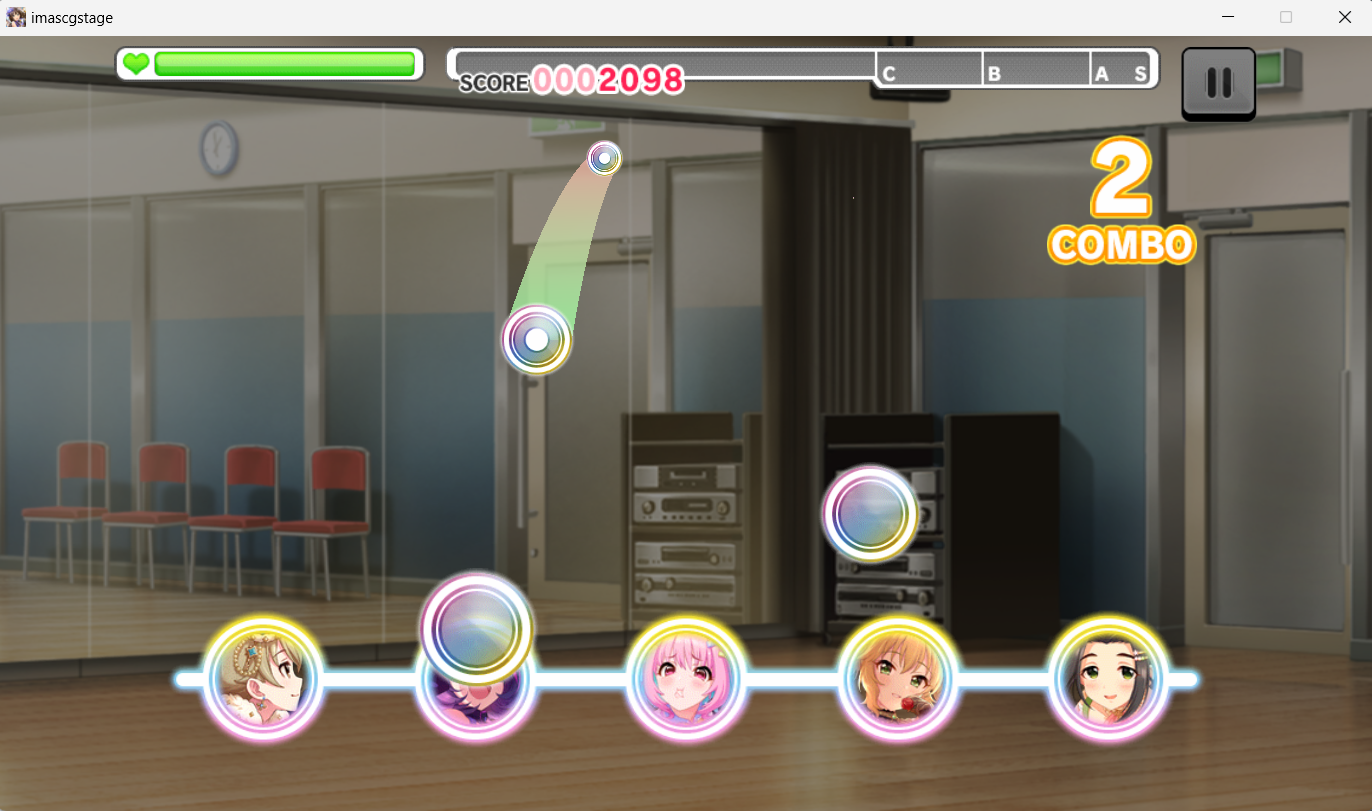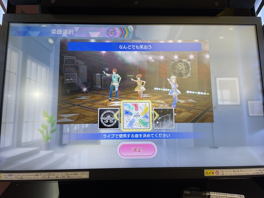 楽曲選択ですが、現状SideMのアイドルを編成に入れている場合はなんどでも笑おうのみ選択可能。本番稼働時には追加期待しております。ドラスタでおねシン歌ってくれてもええんやで